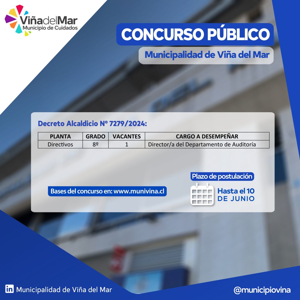 La I. Municipalidad de Viña del Mar, llama a concurso público para postular a Profesionales para ser parte de la Sección Asentamientos precarios, perteneciente al Departamento de Vivienda y Territorio de la Secretaría Comunal de Planificación. Para más información Click Aquí