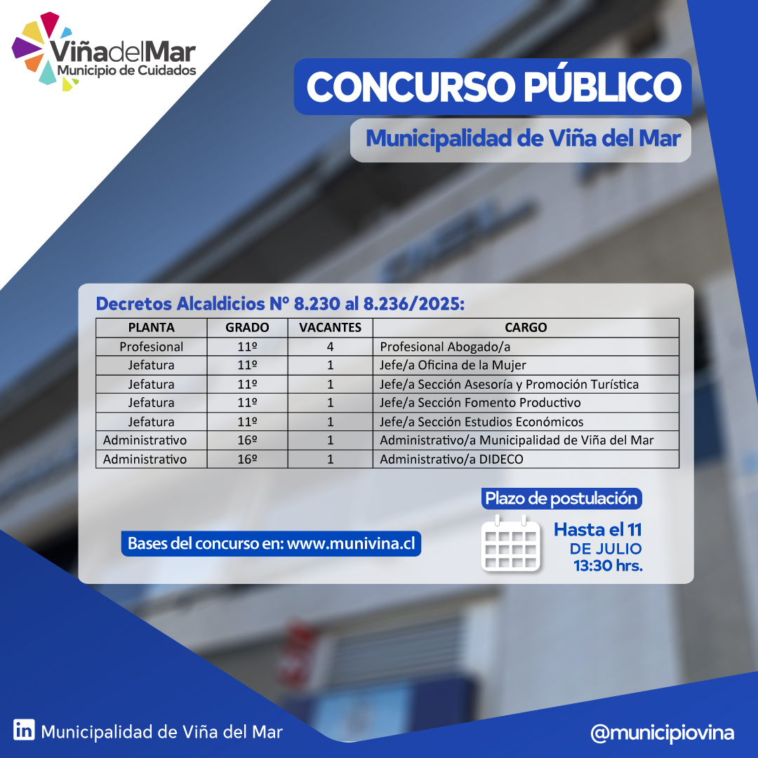 D.A 8236/2025 “ADMINISTRATIVO/A MUNICIPALIDAD VIÑA DEL MAR”.