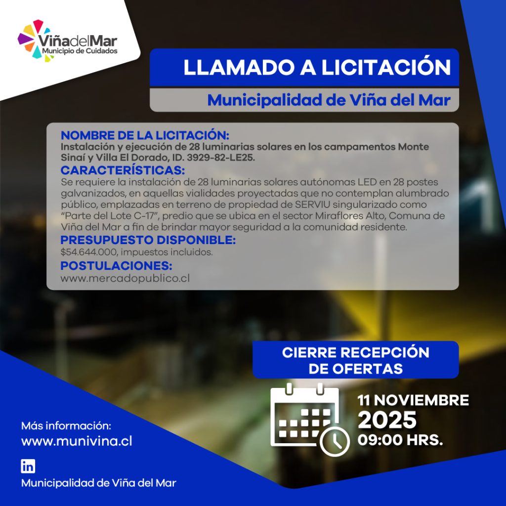LLAMADO A LICITACIÓN RECAMBIO MASIVO DE LUMINARIAS LED SECTOR SANTA INÉS DE VIÑA DEL MAR