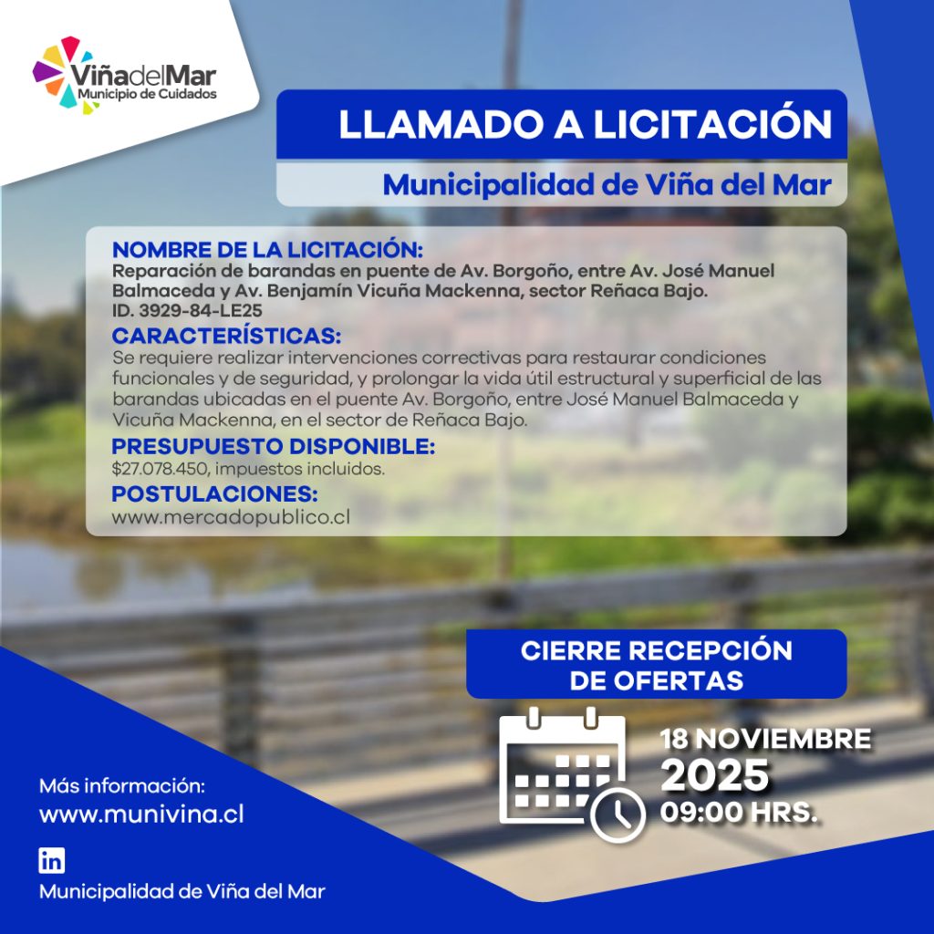 LLAMADO A LICITACIÓN REPARACIÓN PUENTE AV. BORGOÑO