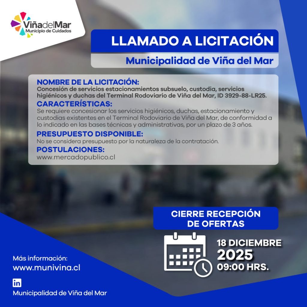 LLAMADO A LICITACIÓN MUNICIPALIDAD DE VIÑA DEL MAR CONCESIÓN SERVICIO DE LIMPIEZA DE ACERAS Y CALZADAS EN LA COMUNA