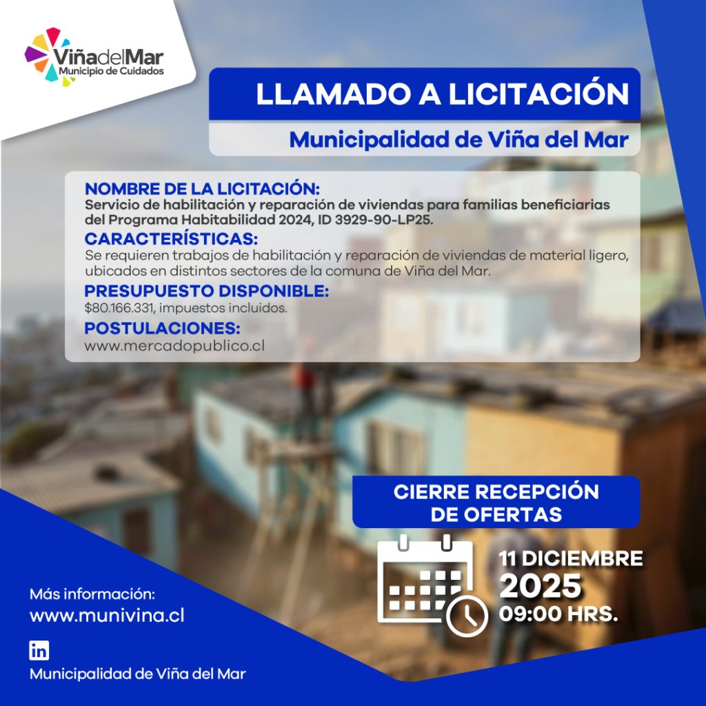 LLAMADO A LICITACIÓN SERVICIO DE PROVISIÓN DE PERSONAL AUXILIAR DE OBRA MENOR PARA EL DEPARTAMENTO DE CONSTRUCCIÓN E INFRAESTRUCTURA URBANA DE VIÑA DEL MAR