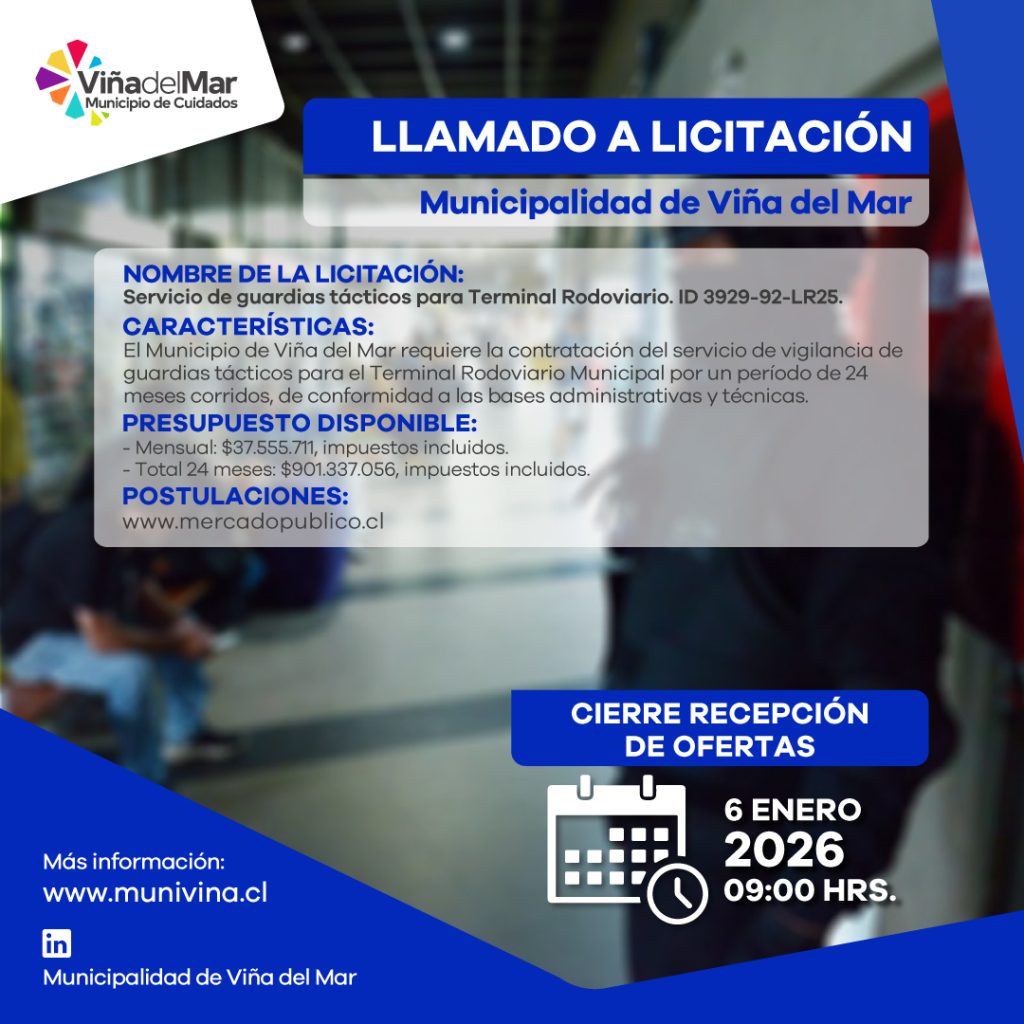 LICITACIÓN CONTRATACIÓN DEL SERVICIO Y PROVISIÓN DE GUARDIAS DE SEGURIDAD PARA LA I. MUNICIPALIDAD DE VIÑA DEL MAR