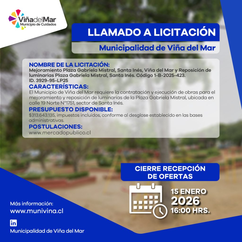 LLAMADO A LICITACIÓN PLAZA GABRIELA MISTRAL STA. INÉS