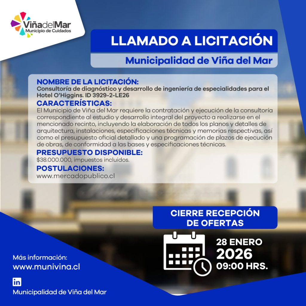 LLAMADO A LICITACIÓN INGENIERÍA DE ESPECIALIDADES HOTEL O`HIGGINS