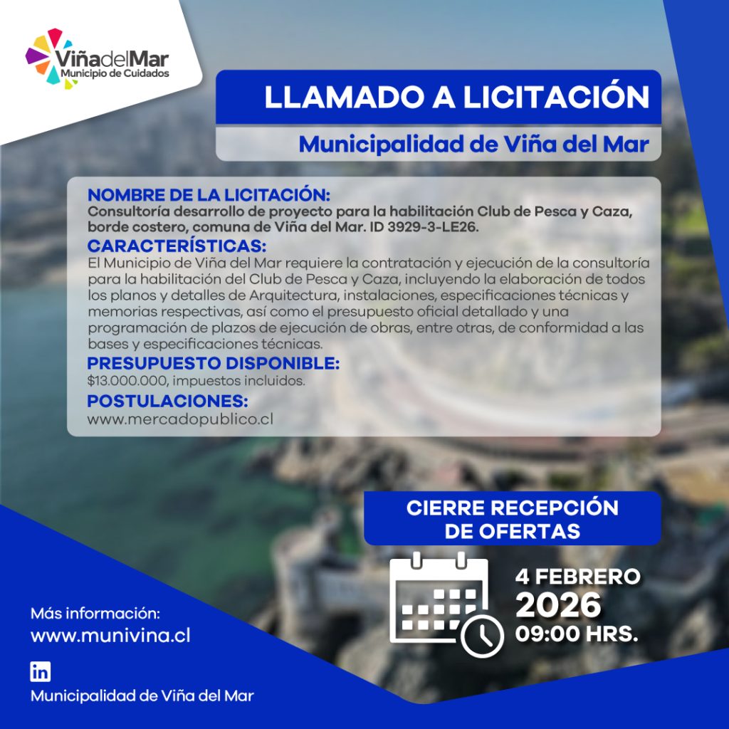 LLAMADO A LICITACIÓN MUNICIPALIDAD DE VIÑA DEL MAR CONSTRUCCIÓN SEDE VECINAL MARÍA LUISA BOMBAL