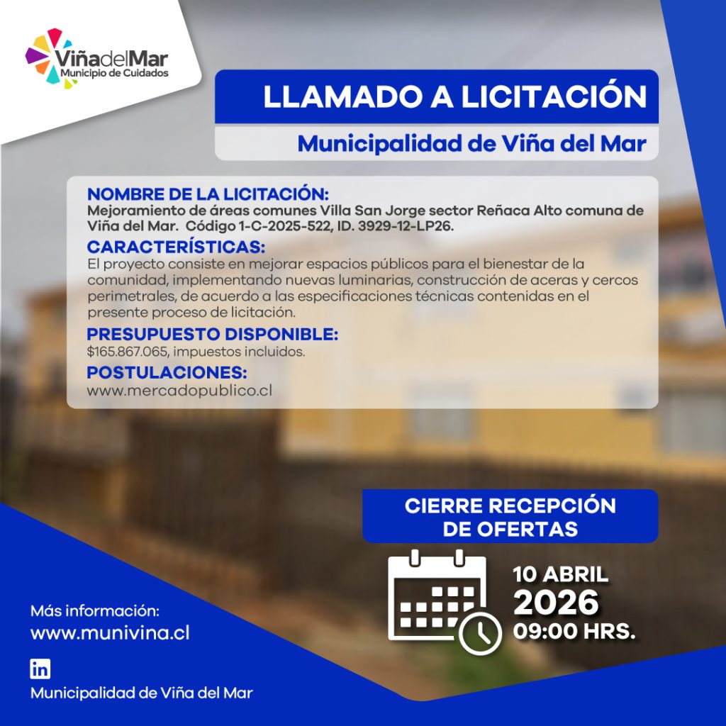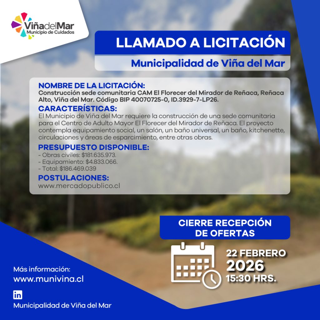 LLAMADO A LICITACIÓN CONSTRUCCIÓN SEDE VECINAL MARÍA LUISA BOMBAL VIÑA DEL MAR