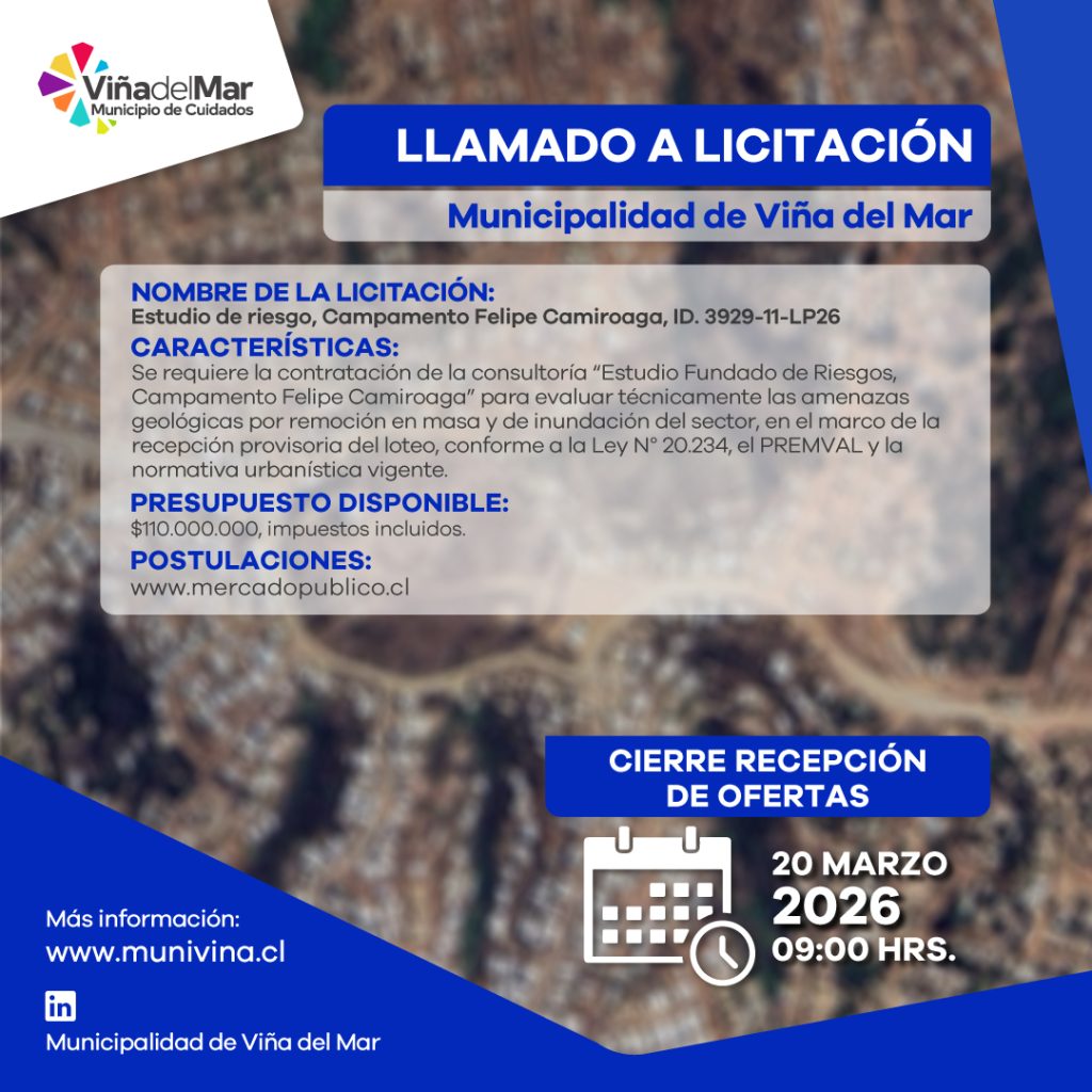 LLAMADO A LICITACIÓN ESTUDIO FUNDADO DE RIESGOS PARA LA ACTUALIZACIÓN DEL PLAN REGULADOR COMUNAL DE VIÑA DEL MAR