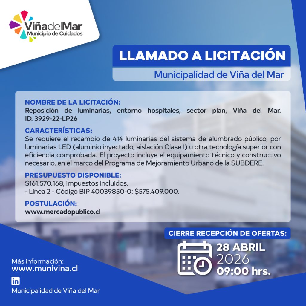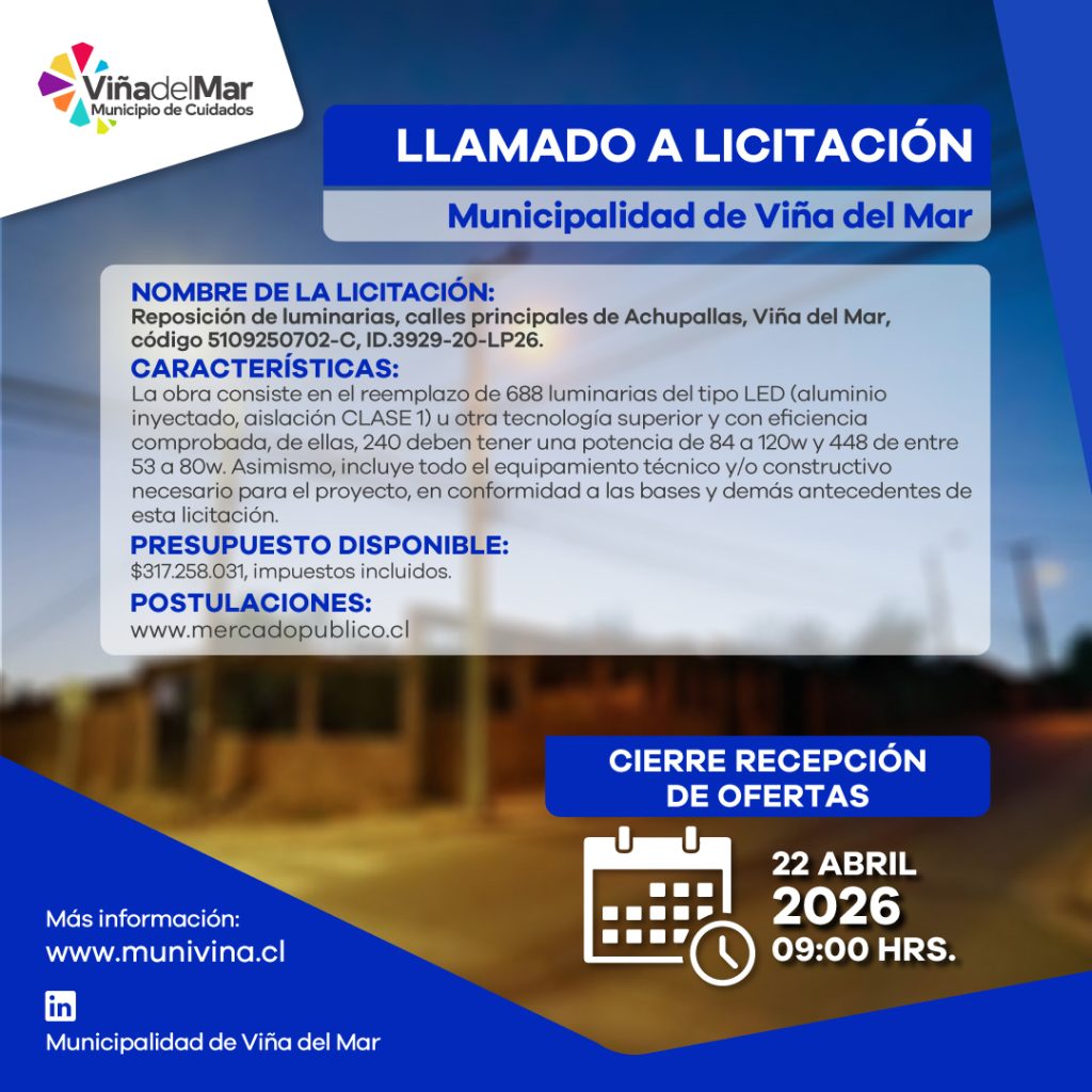 LLAMADO A LICITACIÓN RECAMBIO MASIVO DE LUMINARIAS LED SECTOR SANTA INÉS DE VIÑA DEL MAR