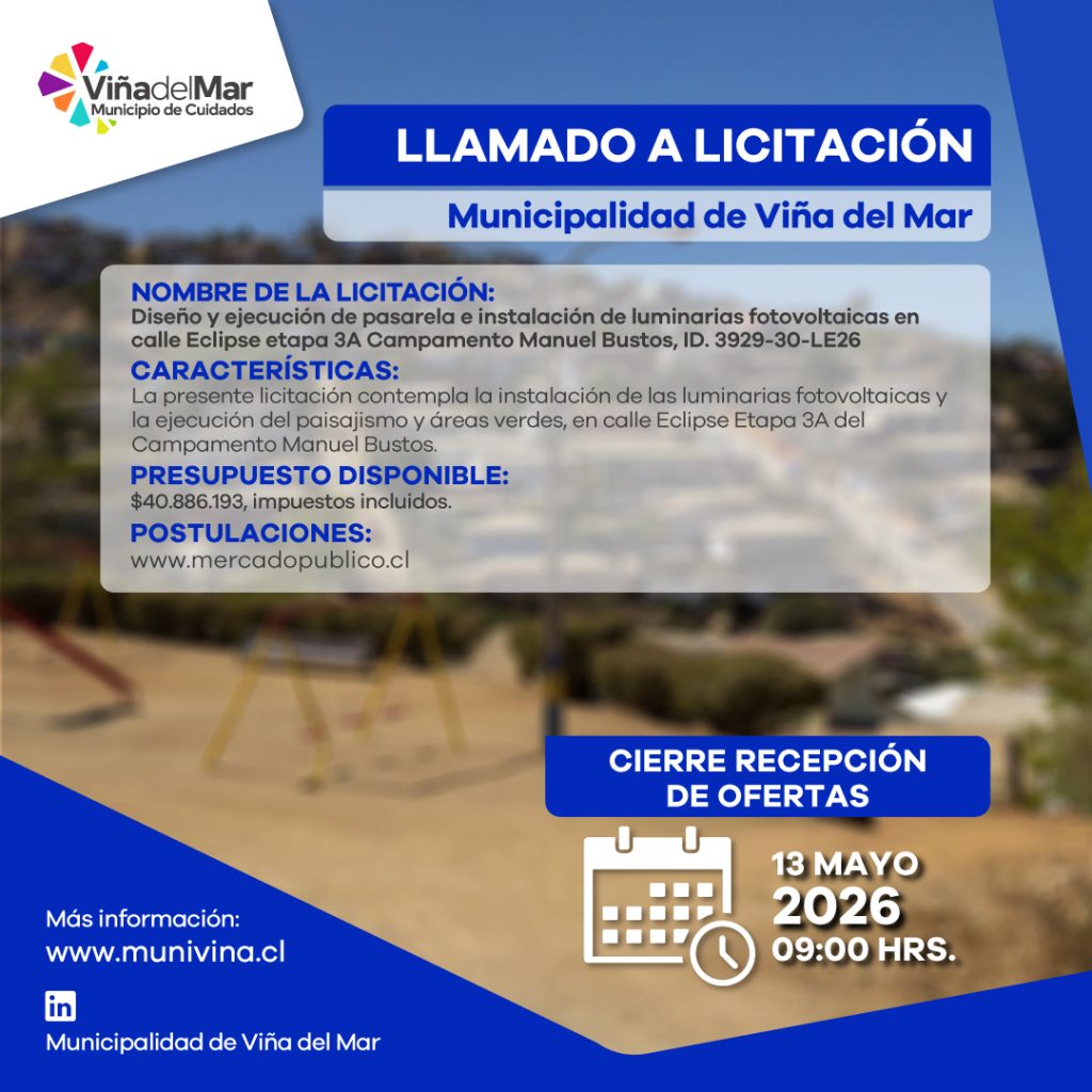 LLAMADO A LICITACIÓN INSTALACIÓN DE LUMINARIAS ESCALERAS ANDACOLLO – OROMPELLO, LA PARVA ACHUPALLAS VIÑA DEL MAR
