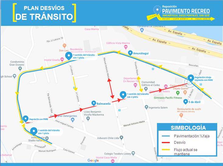 Municipio informa plan de desvíos por reposición de pavimento en calles de Recreo
